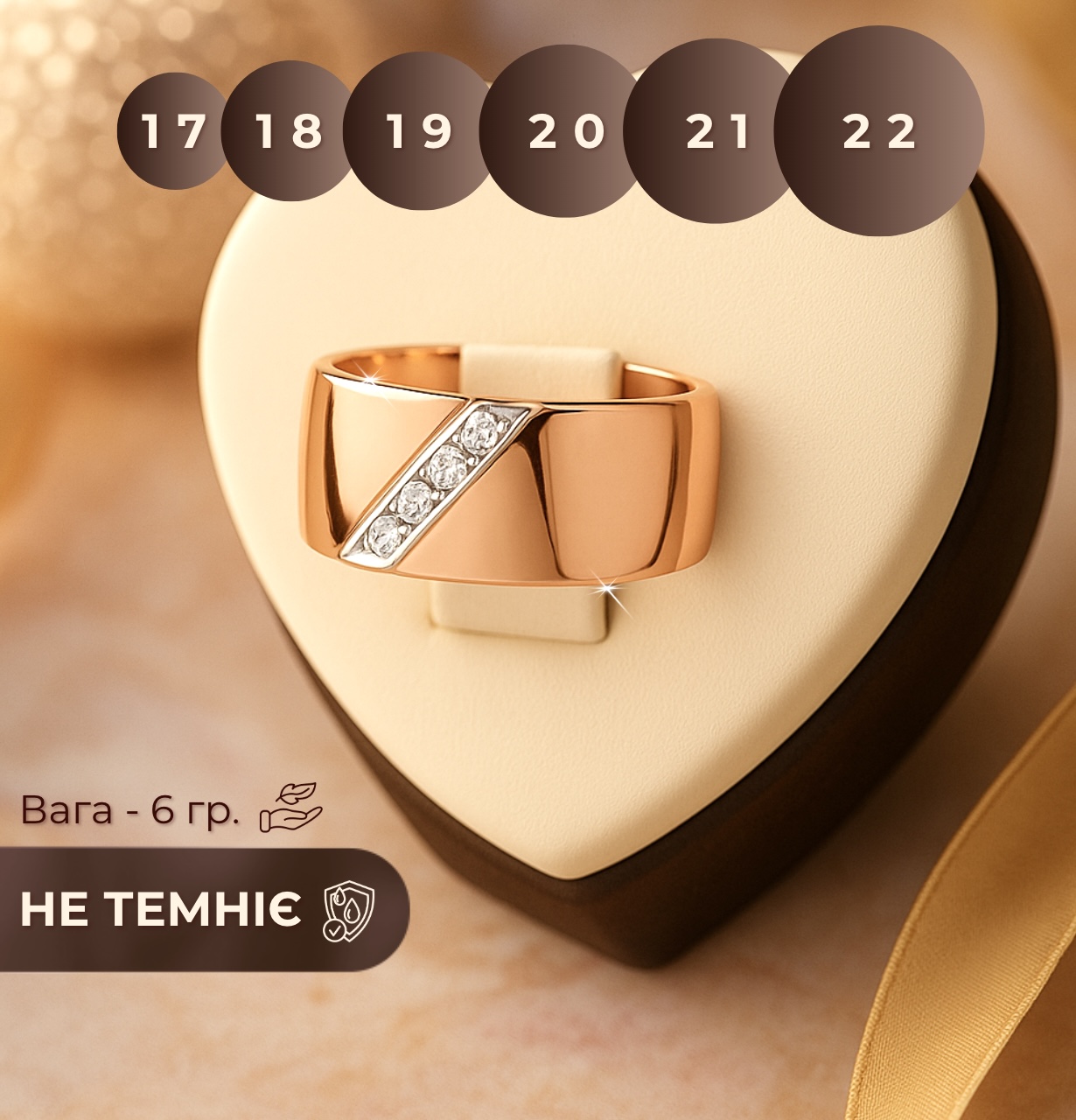 - Розмір каблучки: 17, 18, 19, 20, 21, 22