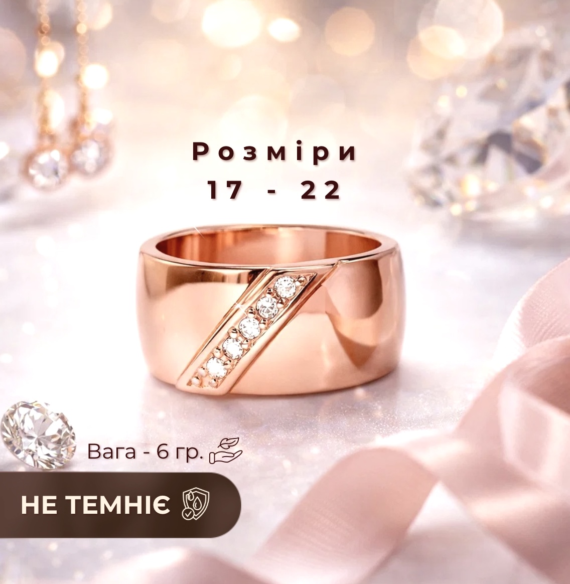 - Розмір каблучки: 17, 18, 19, 20, 21, 22