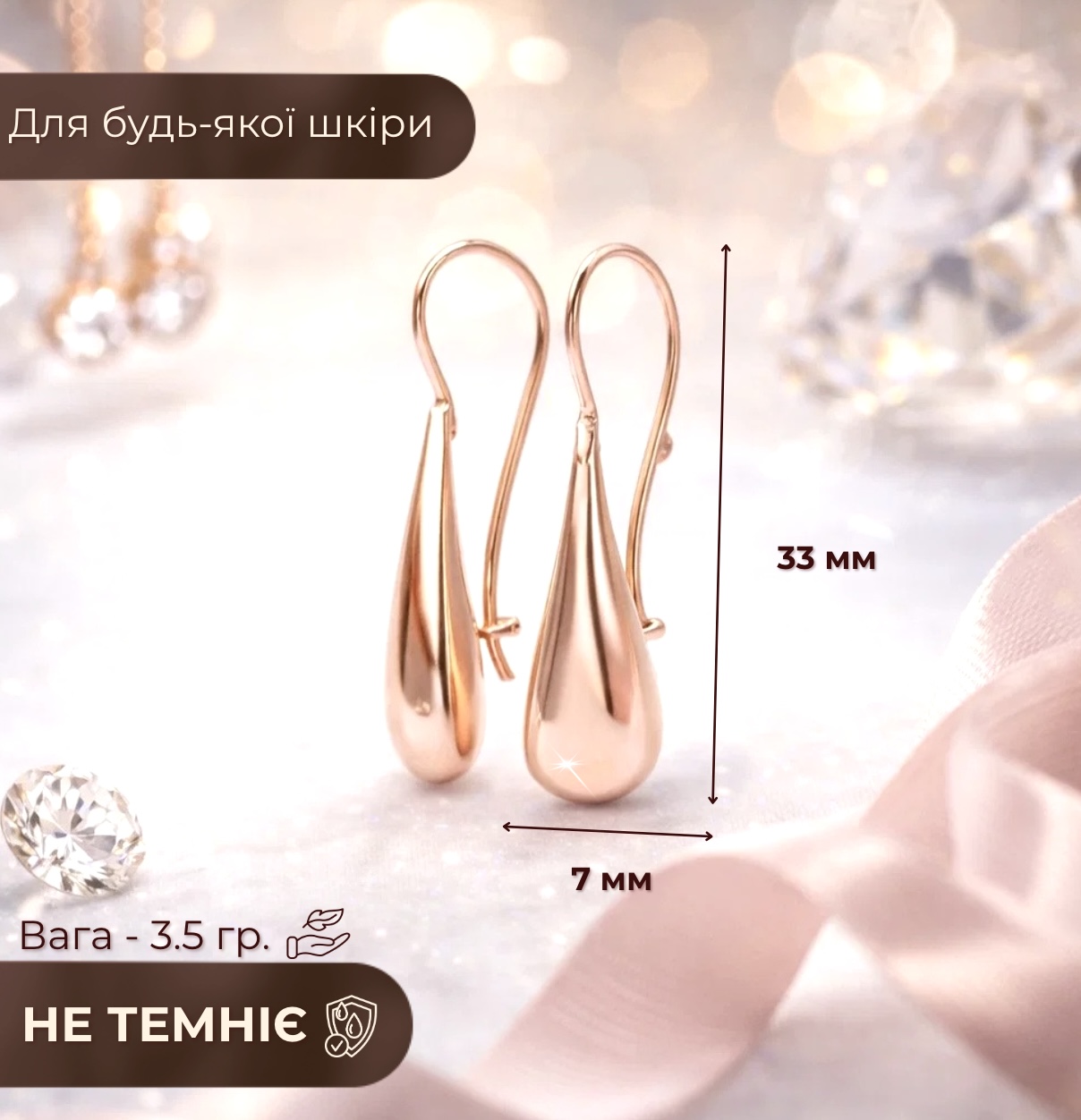 - НЕ темніє після води і парфумів