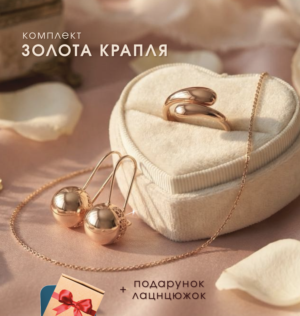 Замовив дружині комплект - ще й ланцюжок у подарунок дали. Дуже задоволена, носить із задоволенням, виглядає стильно й дорого. Позолота не темніє, застібки зручні, не чіпляються. Взяв одразу дві шт - ще й доставку отримав безкоштовно. Рекомендую!