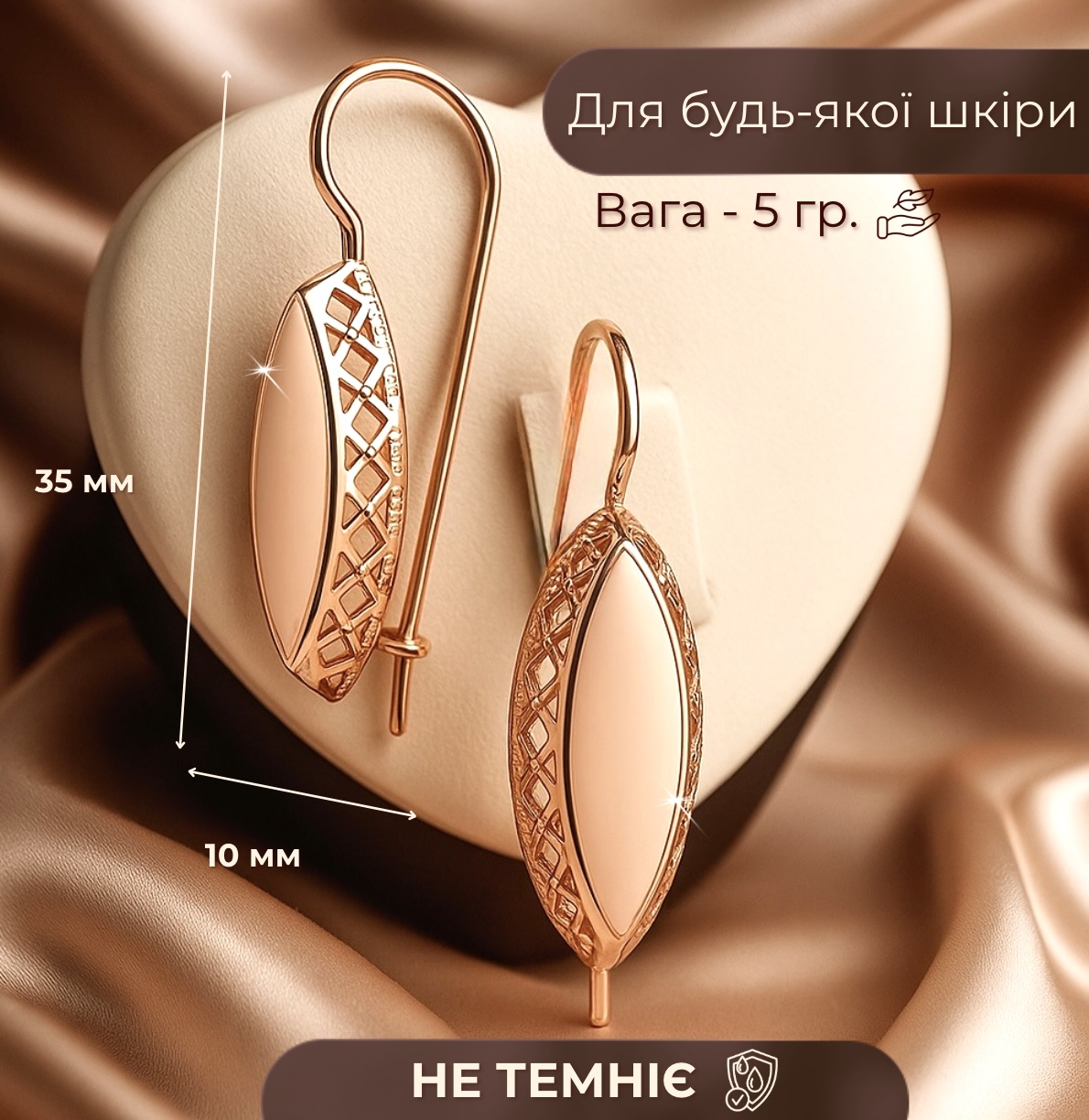 - НЕ темніє після води і парфумів