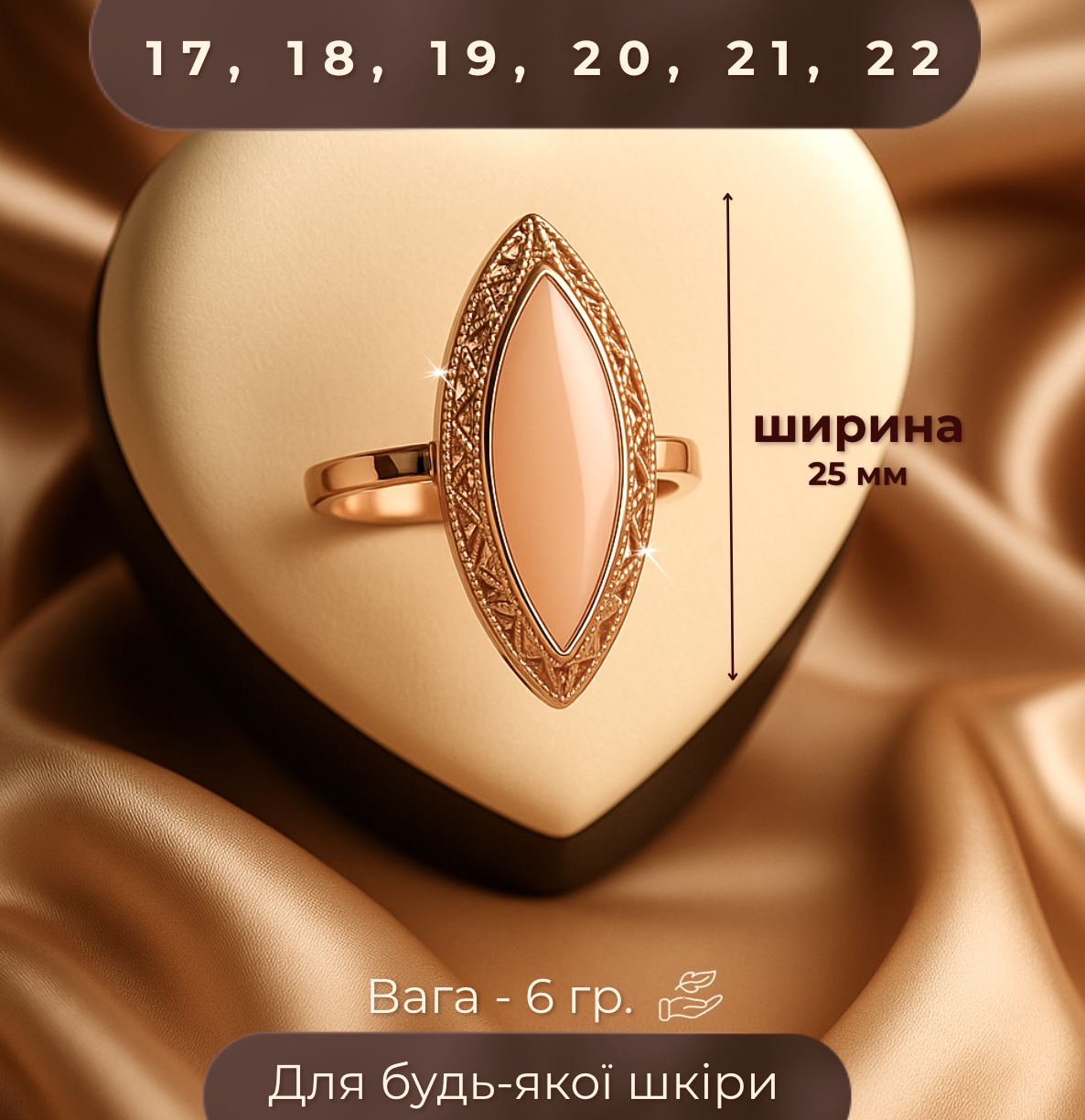 - Розмір каблучки: 17, 18, 19, 20, 21, 22