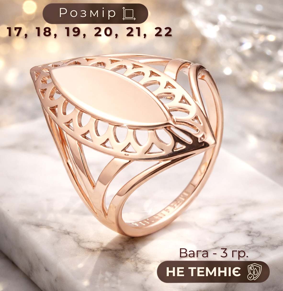- Розміри каблучок 17, 18, 19, 20, 21, 22