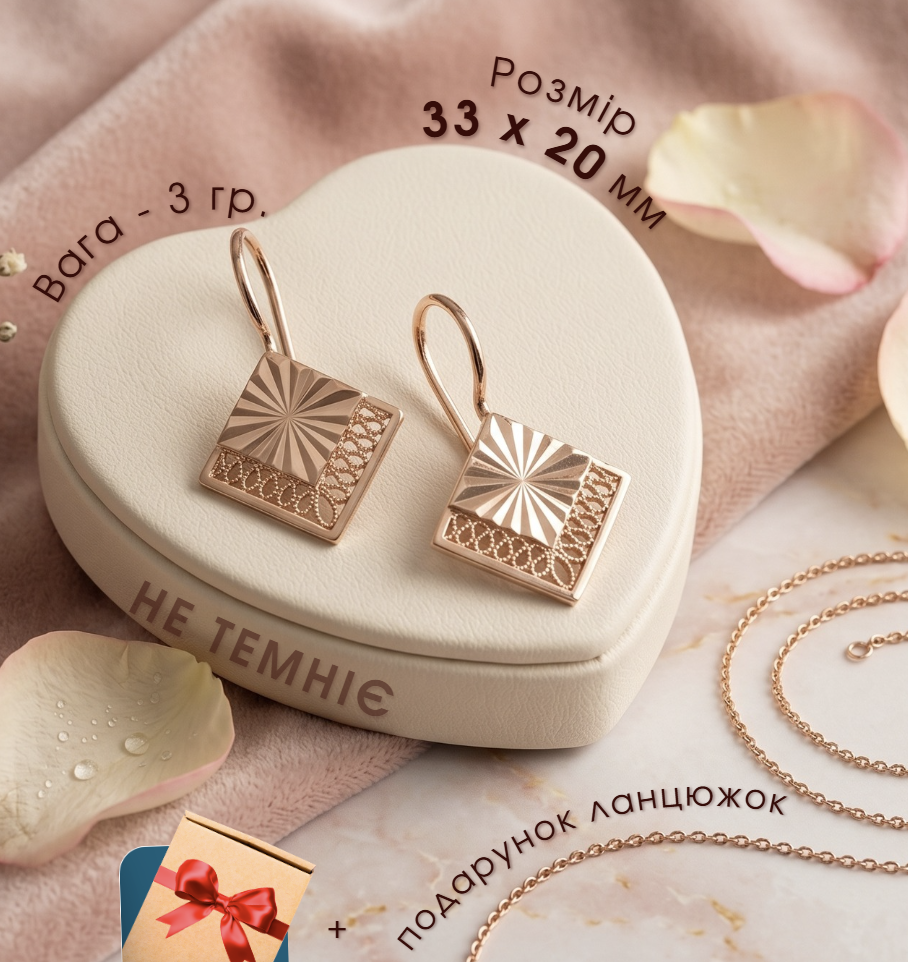 Замовив дружині комплект - сережки та каблучка, ще й ланцюжок у подарунок дали. Дуже задоволена, носить із задоволенням, виглядає стильно й дорого. Позолота не темніє, застібки зручні, не чіпляються. Взяв одразу два комплекти - ще й доставку отримав безкоштовно. Рекомендую!