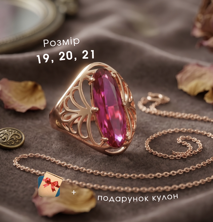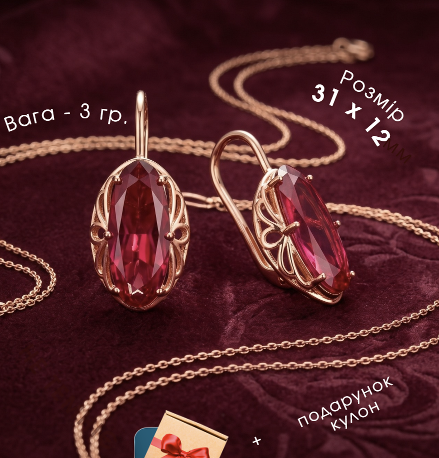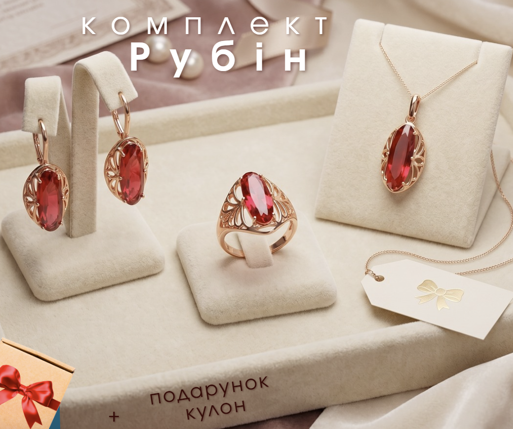 Замовила собі комплект "Рубін" - дуже задоволена покупкою! Сережки легкі, застібка зручна, не натирає і добре тримається. Каблучка гарно виглядає на руці, колір теплий, приємний для ока. Приємно здивував ланцюжок у подарунок - ніжний, акуратний і гарно доповнює весь комплект. Ношу вже кілька тижнів - жодних слідів потемніння чи почорніння.